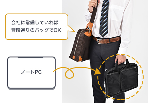パソコンだけを入れるコンパクトな「PCバッグ」もあります。ごくごく稀にしかパソコンが必要でない場合は、会社にいつも常備しておけば便利です。